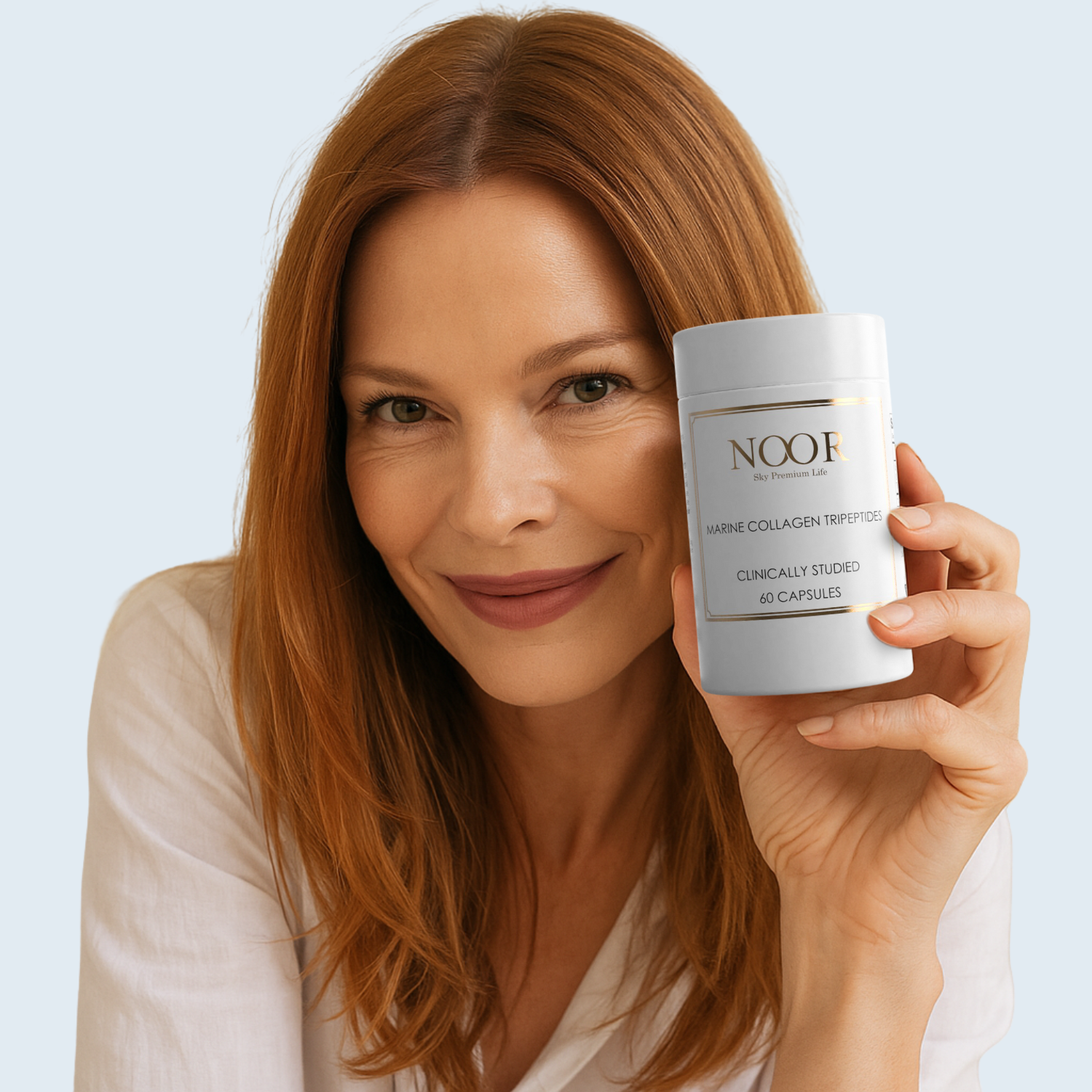 Noor's Marine Collagen is the only anti-aging supplement with published clinical studies in women 40-65+ with fine lines and wrinkles.