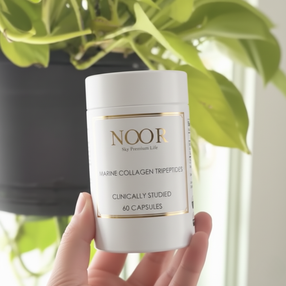 Noor Marine Collagen Capsules contain ethically and sustainably sourced, premium marine collagen tripeptides.